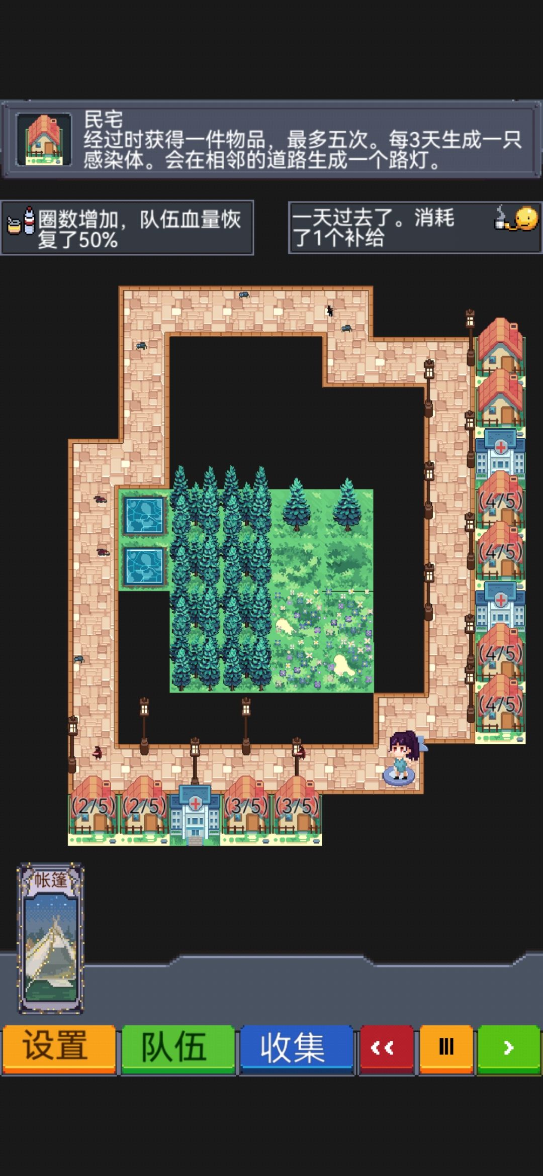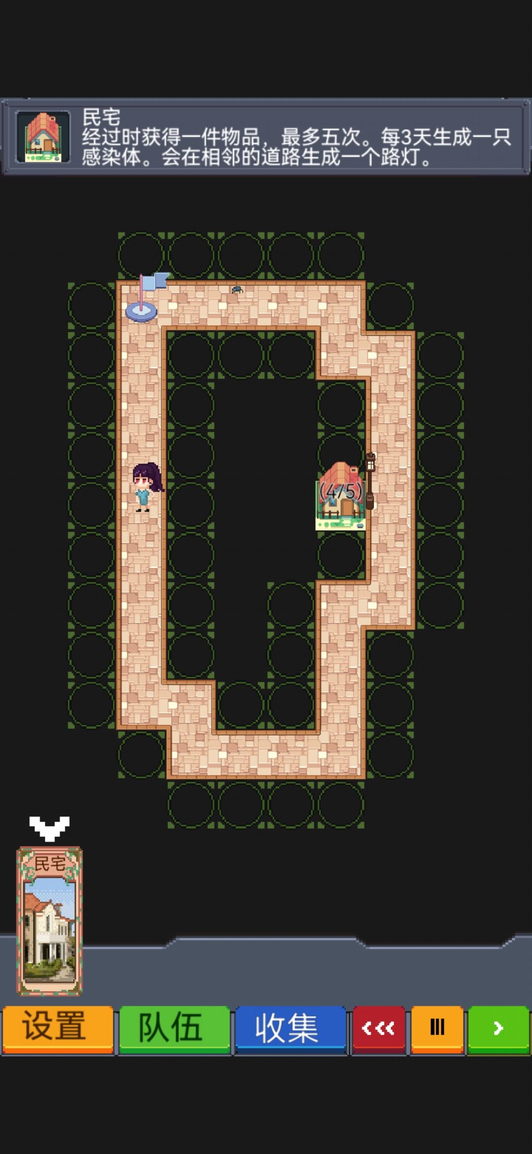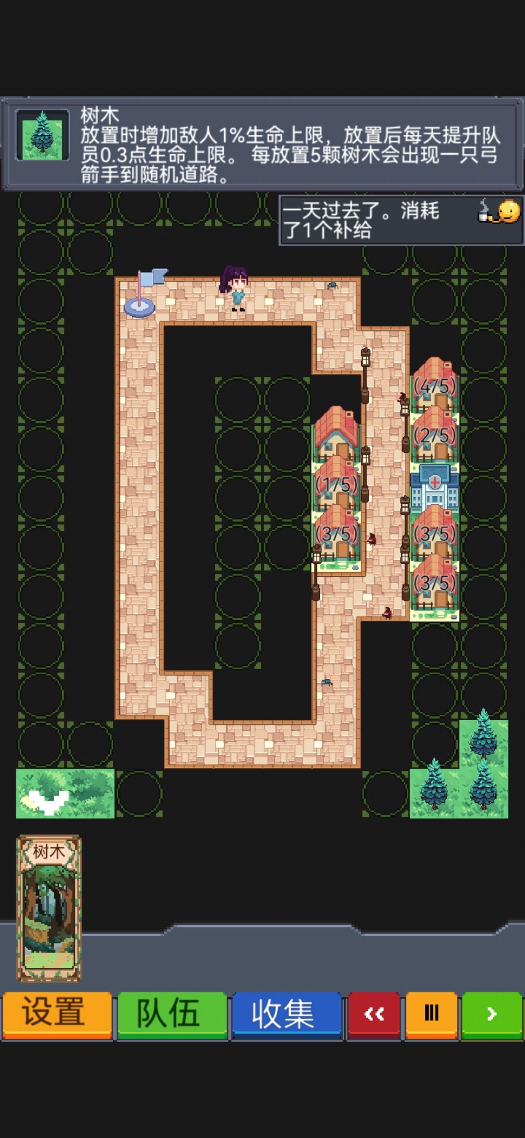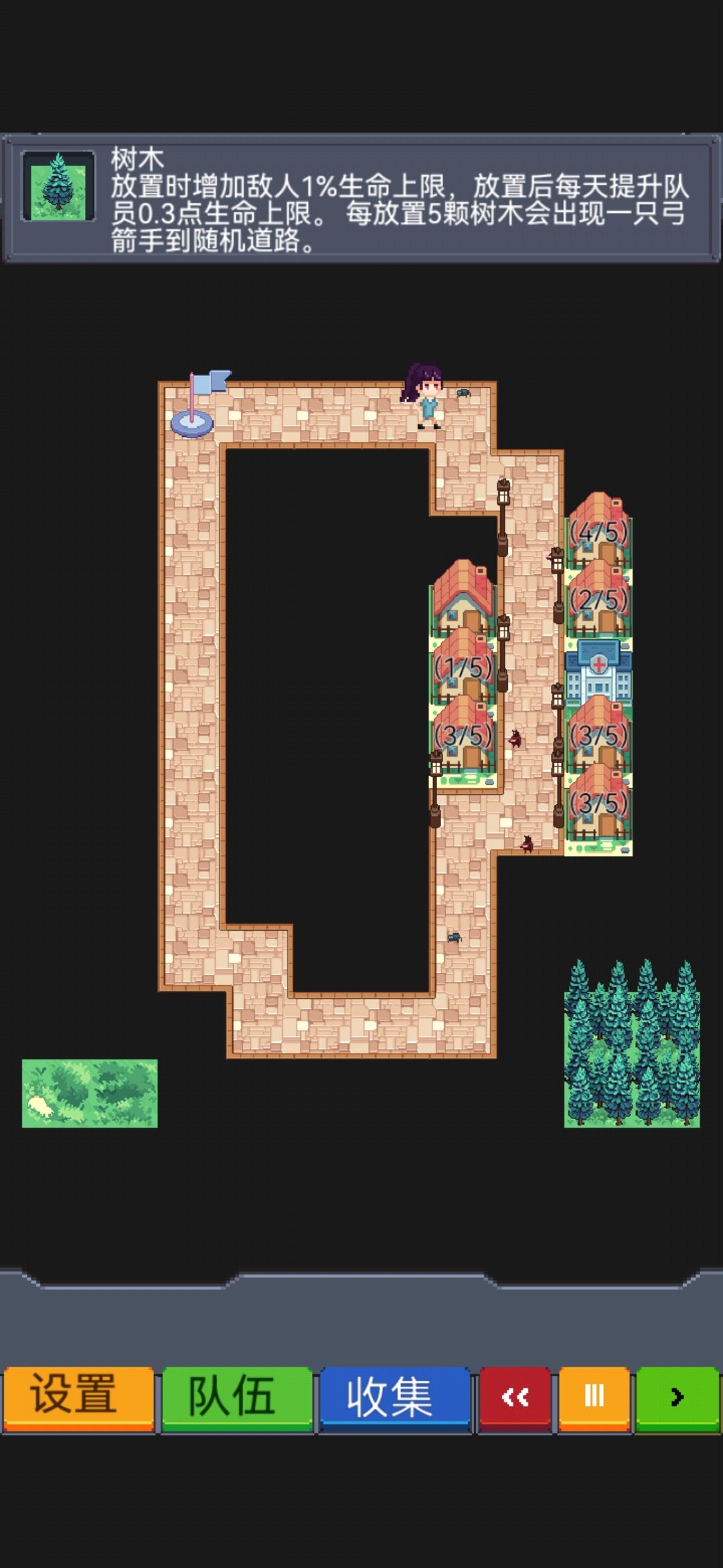 继续游戏,很快放下了第三个民房。现在我们手中的是环境类建筑:树