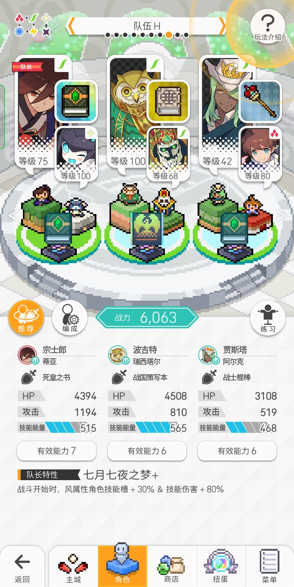 工具人队长四郎或者丛云,用来给全队提供充能,武器魂珠选择可以把充能填到开局满充即可