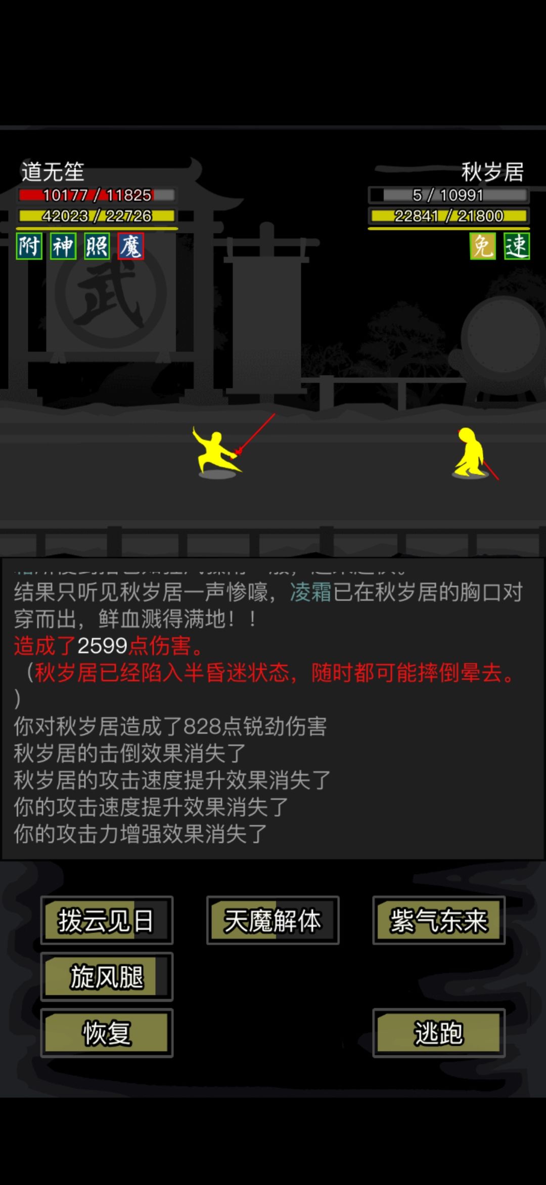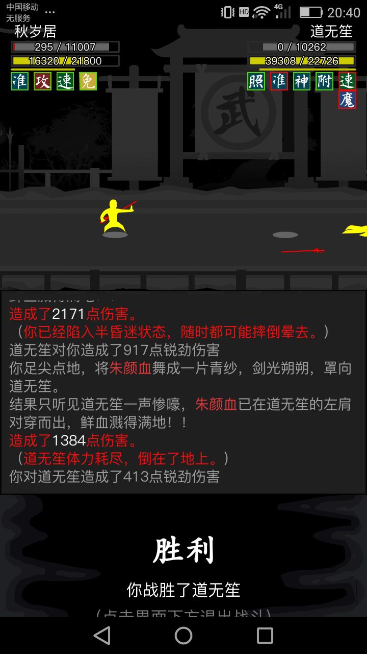 首站,我谨慎地采用了保守战法。以醉仙望月步牢守本心;果不其然,道无笙一招旋风腿意欲惑我心神,却是计划落空。