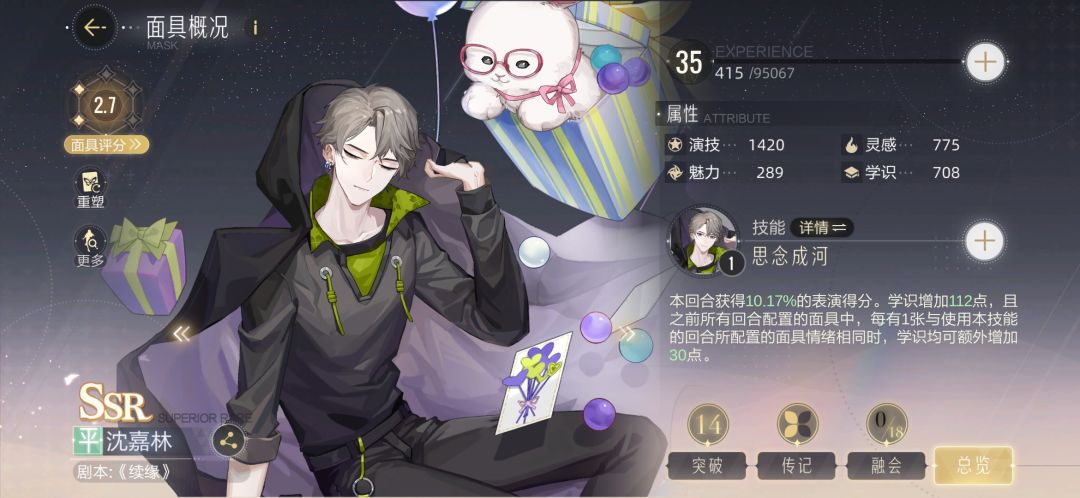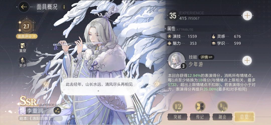 SSR里唯二能把情绪点利用到极限的卡,南九起手,重润收尾,光凭面值就能硬过很多卡关三星本。