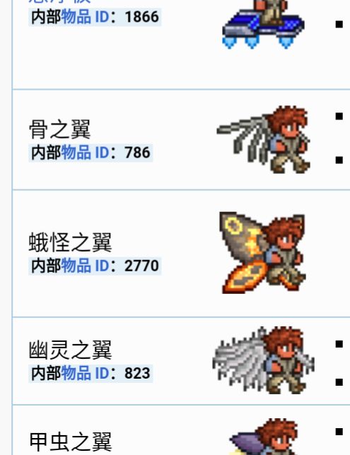 蘑菇滑翔版,甲虫之翼,骨之意,蛾怪之翼,幽灵之翼