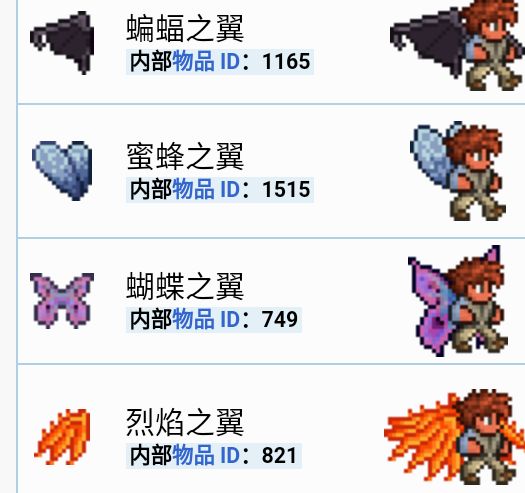 烈焰之翼,蝴蝶之翼,蝙蝠之翼,蜜蜂之翼