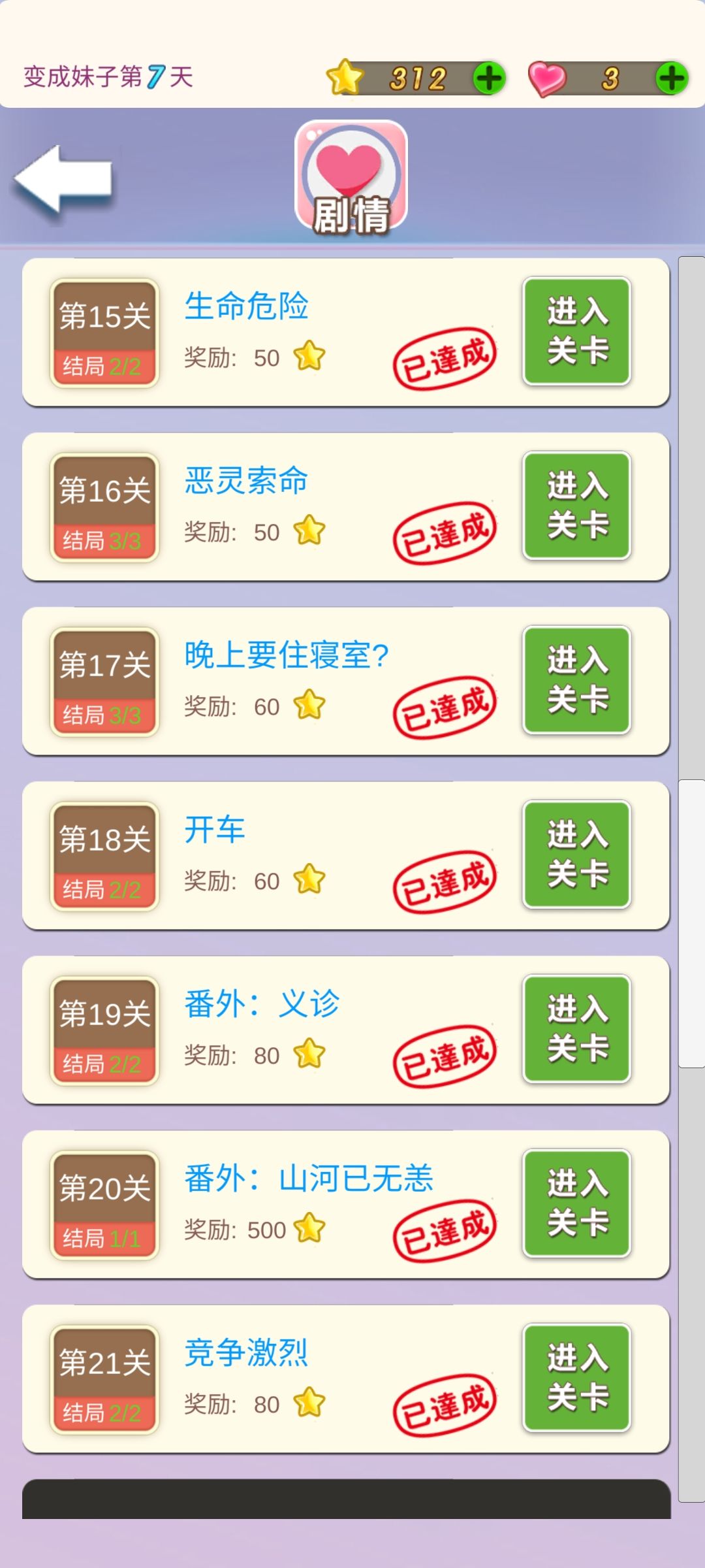 全剧情解锁+全结局+全衣装解锁