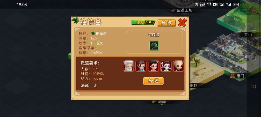 4.武林里的派遣最好把所有的位置塞满,派1个人只有1份收入,派5个人有5份收入。萌新本新表示以为战力达标后奖励就一样了,其实并不是……战力只决定你能不能出发,跟最终的收入没半毛钱关系。