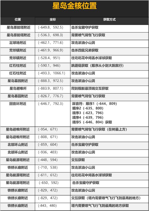 帖子最下面有星岛的全金核收集坐标,纳维亚 班吉斯会在后续更新在本帖中!