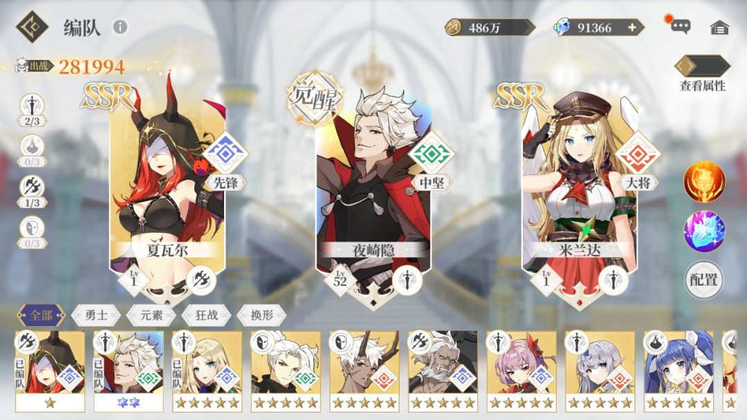 此阵容上限不如夏+夜+勇士大将,但不推荐凹暴击。因此换上了米兰达保证暴击率。