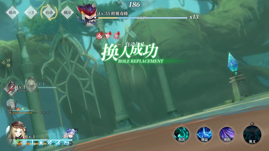 通常情况下,大多数boss是第一、三回合释放大招,上述刚好将这两轮大招均让工具人吃下,主c仅吃一下普攻。