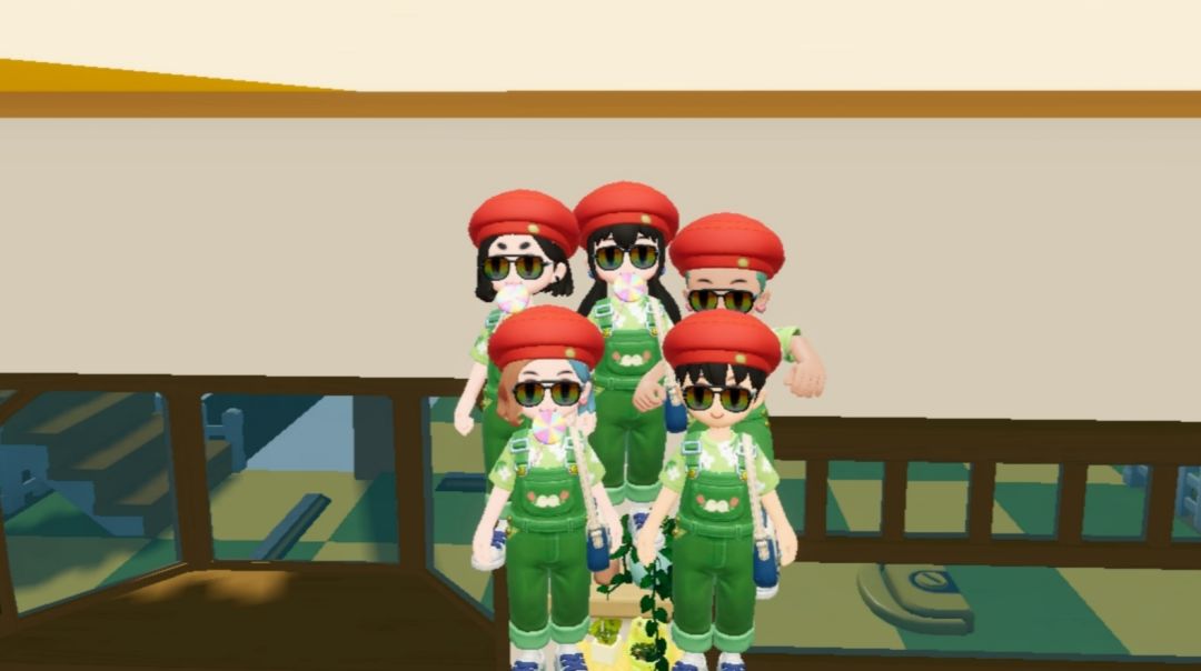 7图: 一起绿色背带裤!
