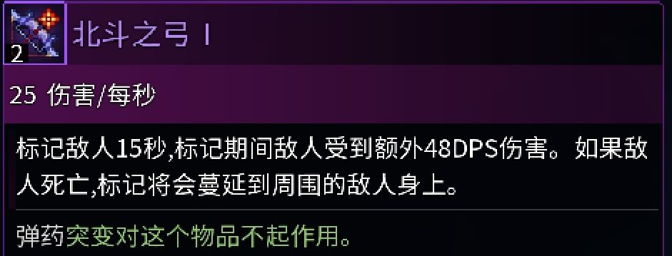 北斗之弓:增加标记期间的伤害(可配合变异“杂技背包”使用)