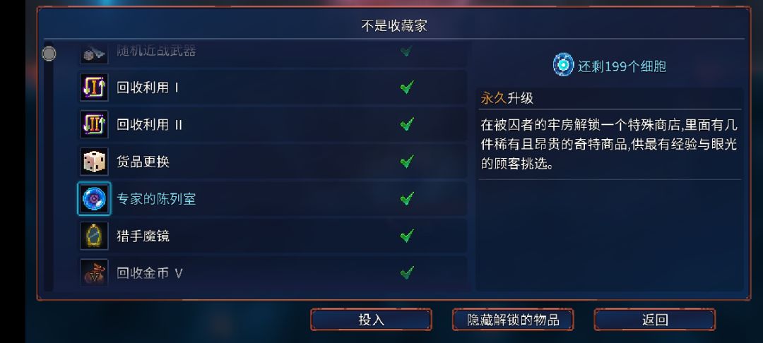 点满解锁,以后会在牢房刷出特殊房间,可购买猎人手雷、被遗忘的地图(使用时点亮当前地图所有区域)