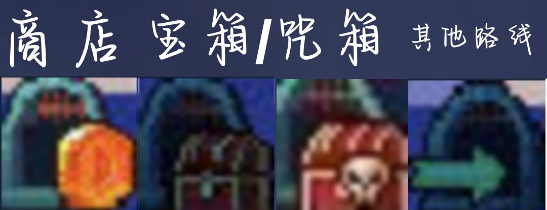 宝箱门(咒箱、普通箱子)、商店门(武器商店、技能商店、补给商店)、武器门(又名祭坛,武器二选一)、细胞罐门(给一定量的细胞)、路线门(可以根据不同细胞难度前往不同的地图)、剧情门(一部分门会获得图纸,一般为剧情)