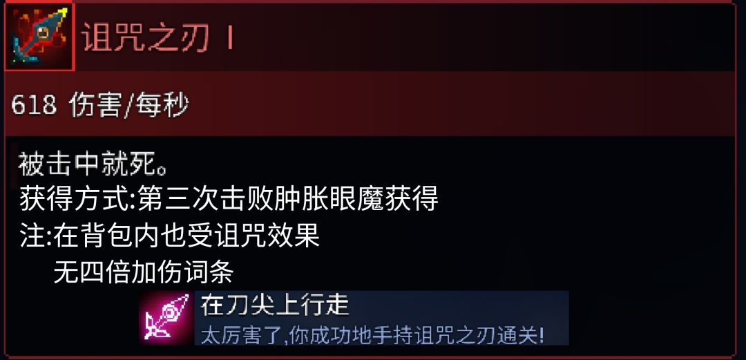 咒刀:伤害极高,金色咒刀获得“伤害+300%,但用不了其他武器技能”但你受到伤害就会死亡