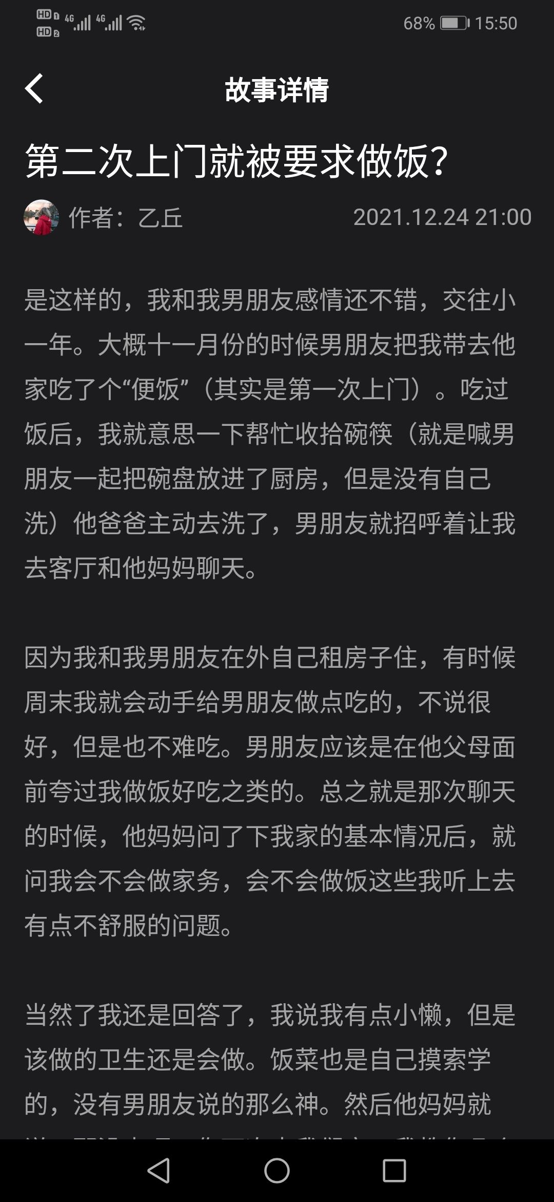 第二次上门就被男方妈妈要求做饭。