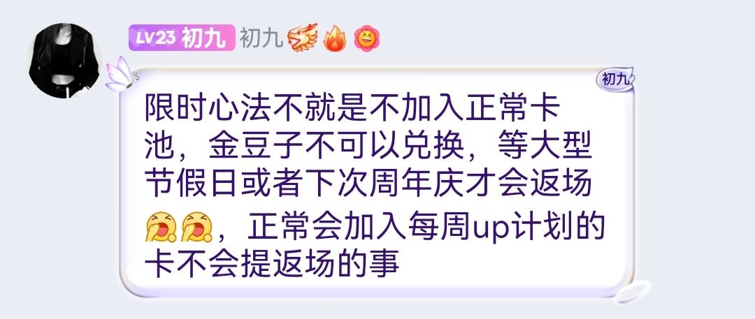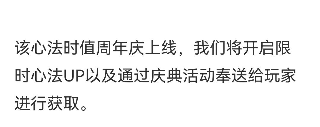 周年庆就一个机巧灵心的限时心法,注意,是限时不是限定,还有一个稀有心法,就第三幅图那个,而且九天不返场