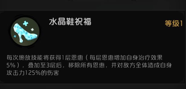 灰姑娘技能可以减防和晕眩,释放技能叠加恩惠,恩惠这个群体输出伤害可是很高的,并且还能造成破盾,这就使得灰姑娘一个辅助,输出有时候甚至比次要输出莱妮丝还高。