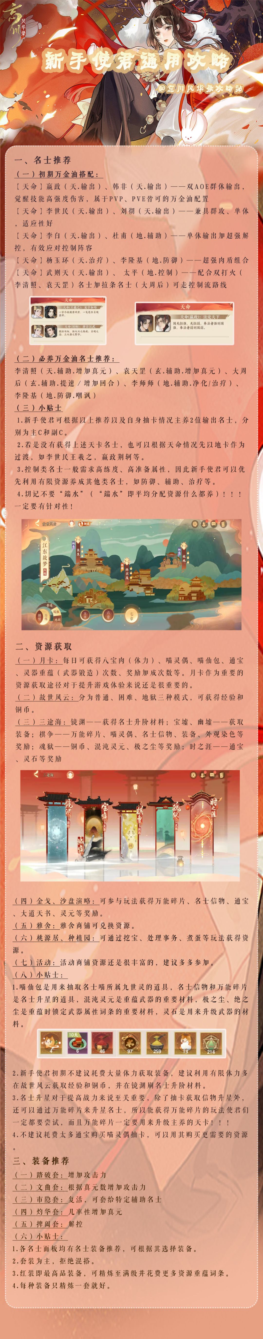 今天为各位新使君们带来一份通用攻略,包含了大家最关心的阵容搭配、资源获取、小tips等,希望能对新手使君的忘川之行有所帮助!