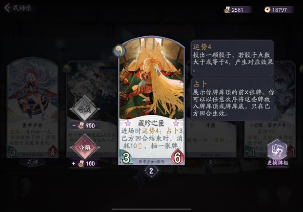 ★匣子是新版本式神里八位最弱的一个,捆运势捆的很死,并且灵活性全靠三勾开卡包。
