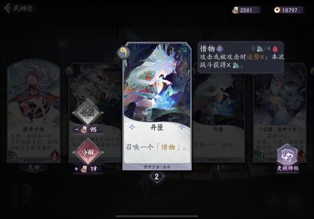 ★进场运势4,占卜3。增加运势频率,但是和河童被动冲突,强行塞入的加强效果。虽然契合度不高,但是占卜效果本身就很强。