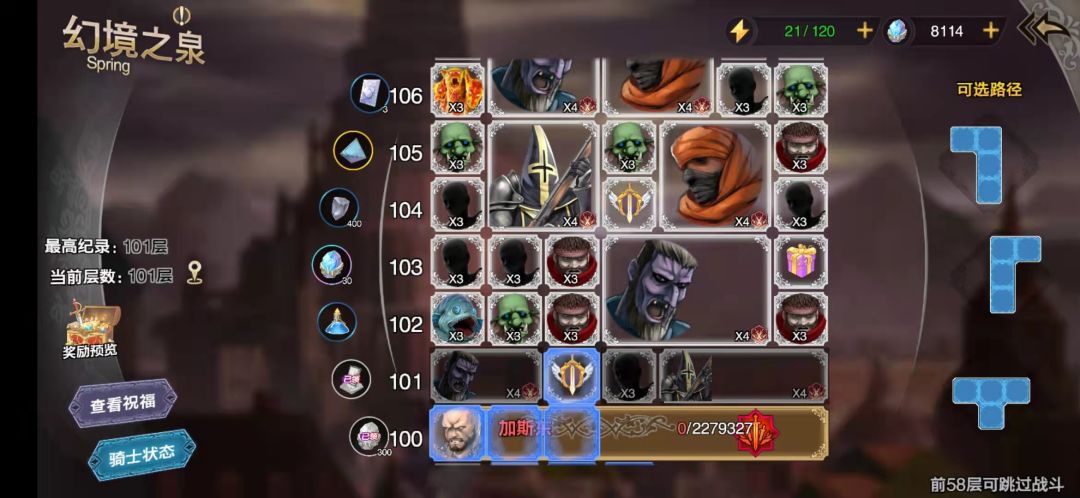 A.幻境阵容推荐: 黛亚+帕梅拉+女仆+露娜+塞尔维斯(塞西尔),黑骑用在小怪本无伤过关,塞西尔用在BOSS本,露娜大概2W8即可过100层,塞西尔可以0练度(有练度可以减少回合数)。