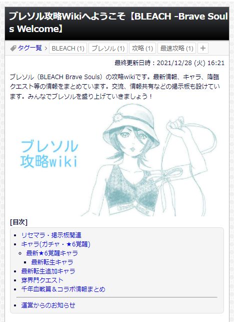 内容更新的很快(但不是特别全面),主要是卡池角色评价比较有用,其他的可以自己上去看。也可以自己搜更多的wiki站,比如搜 “ブレソル攻略” ,或者搜 “bleach BS の攻略” 这种
