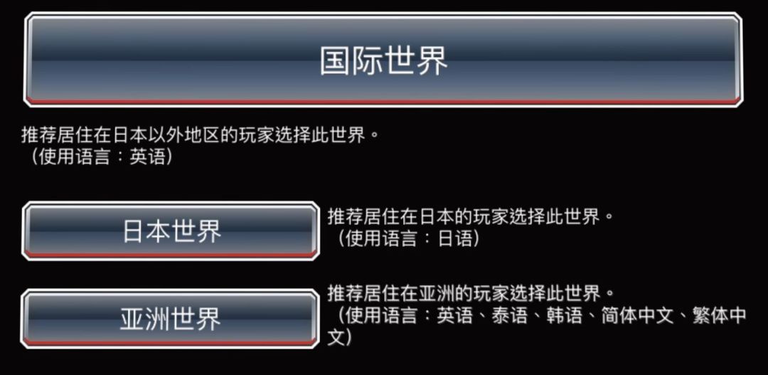 上面的世界+语言的选择是不能改的,想改的话必须删游戏重装才行。另外要注意的是,ios和安卓同服互通,但国际服、日服、亚服不互通(不能跨服邀请)。