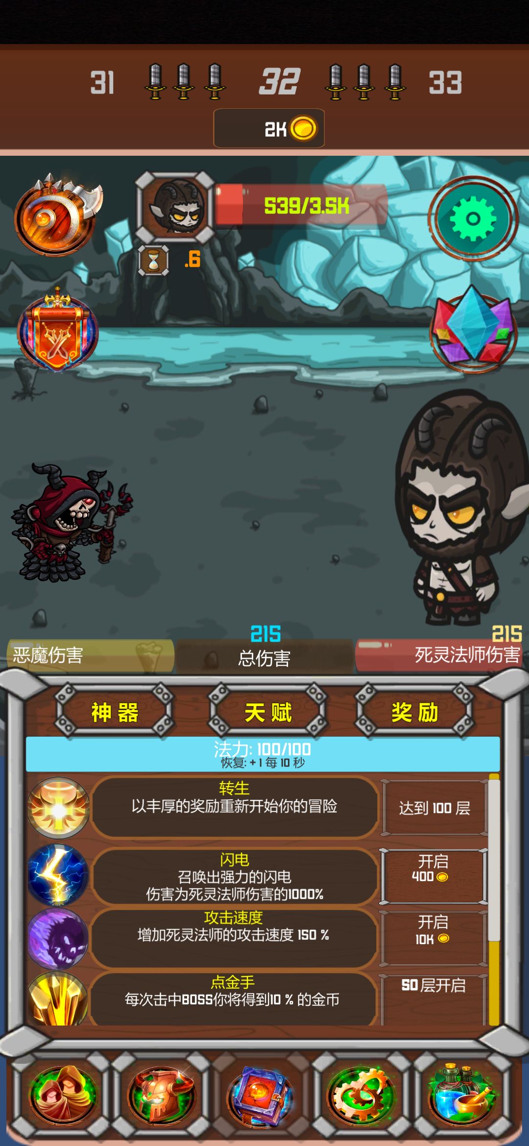 1.死灵法师等级(通过金币升级),增加英雄基础伤害。