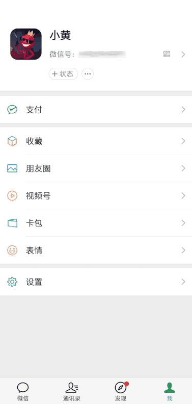 Step1:打开微信“我”的界面并点击倒数第二行“表情”