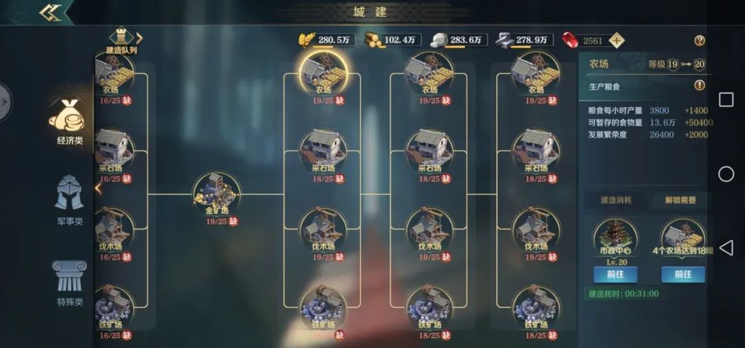 总得来说,前两天就是不停的获取资源,并用尽可能快的方式,升级市政中心。