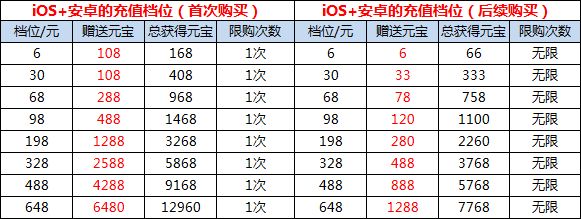 活动内容:水粉们充值可获得元宝返还,不同档位首次购买可获得至少20%的元宝返还