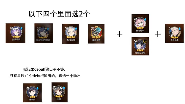1.上debuff的输出手和辅c,效果命中一定要在65以上,这样才能保证最大命中,虽然还是有15概率抵抗