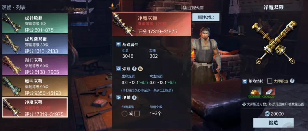 虎扑殴狼(穿戴等级LV.1)虎煌溃双鞭(穿戴等级LV.30)狱门双鞭(穿戴等级LV.60)