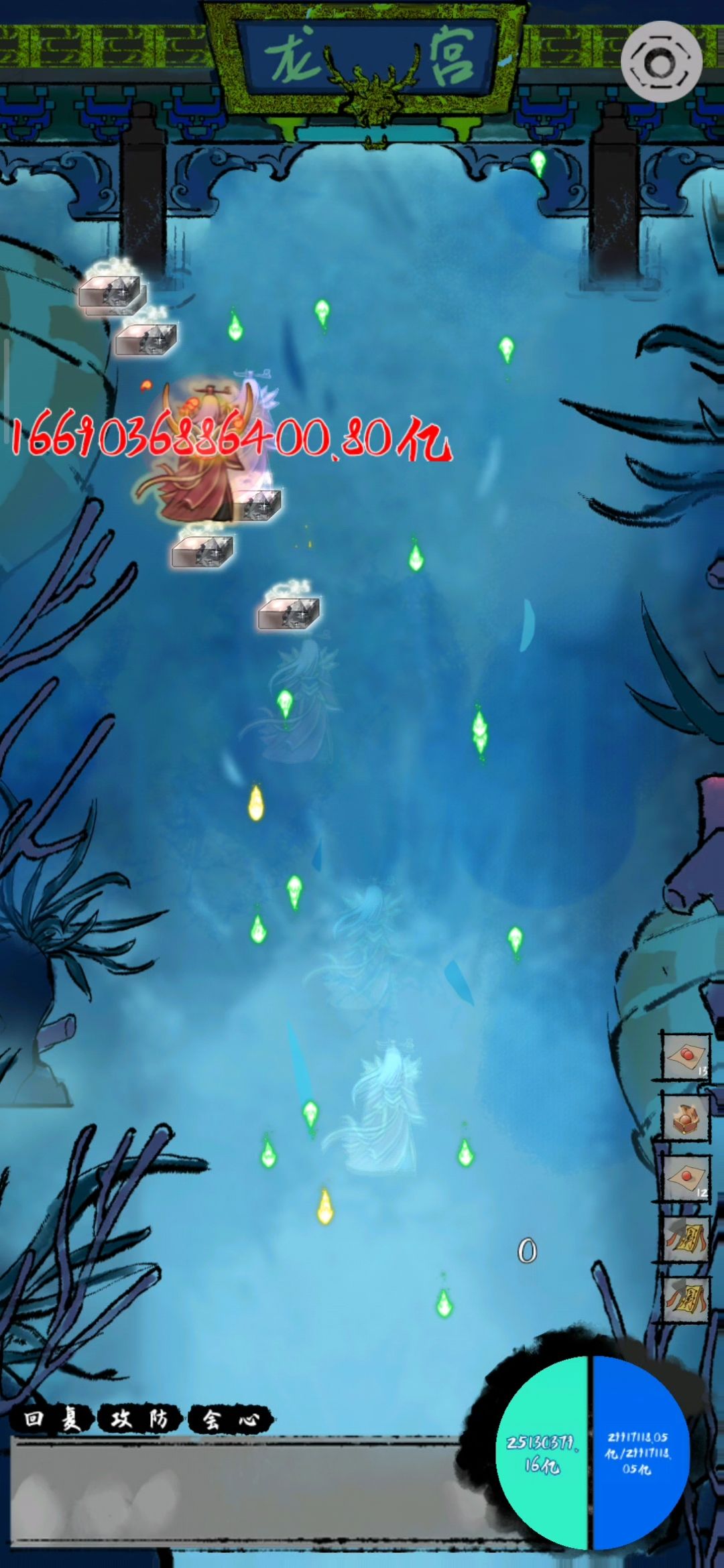 弹幕法宝方面选的是射速极快的优先追踪穿透散射反弹数量的,比如射速最快的弹射石银针飞镖等一瞬间就秒了对面,对面还没出手就tm离谱,射速其次的是六弦琴等一些,更慢的可能攻击很高比如翻天覆地但是射速依次降低而且法宝本身伤害gg加成可有可无,红色有些有特殊技能的比如寒冰打中冰冻也可以用多子弹追踪的就是慢一点如果自己攻击伤害低时秒不了人可以控嘛。考虑到攻击射速和出技能的程度,六弦琴技能很多很容易出合适的,自带数量,配合反弹追踪穿透等效果拔群,飞镖弹射石合适的也很好,当然其他的也不是不能用只是没最高射速开局瞬秒的爽啊!这套路太爽了,开页面对面就死,心魔BOSS都没机会出手就瞬秒(我录视频这个秒不了了还没转攻击血量太高了。。。前面都是秒)。小妖怪也是发导弹瞬秒不耗时不用动。