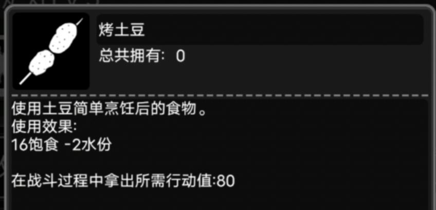 烤土豆 : 16饱食度 -2水分