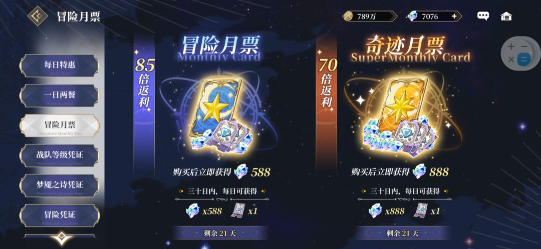 这个冒险月票的话可以买,补充钻石用,那些个凭证有条件就买 不过推荐度不高,68一阶,第二阶是需要再画68重新买的,一般一阶有一万多砖石,但是收齐很慢。