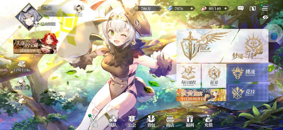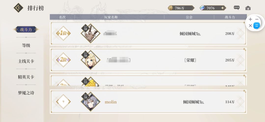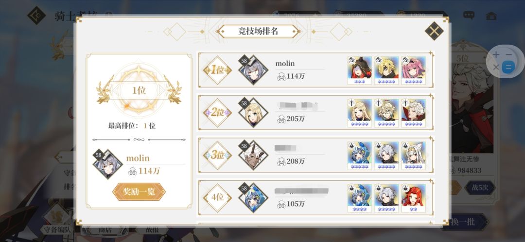 第十四日结束,战力116w,两个竞技场都登顶过了