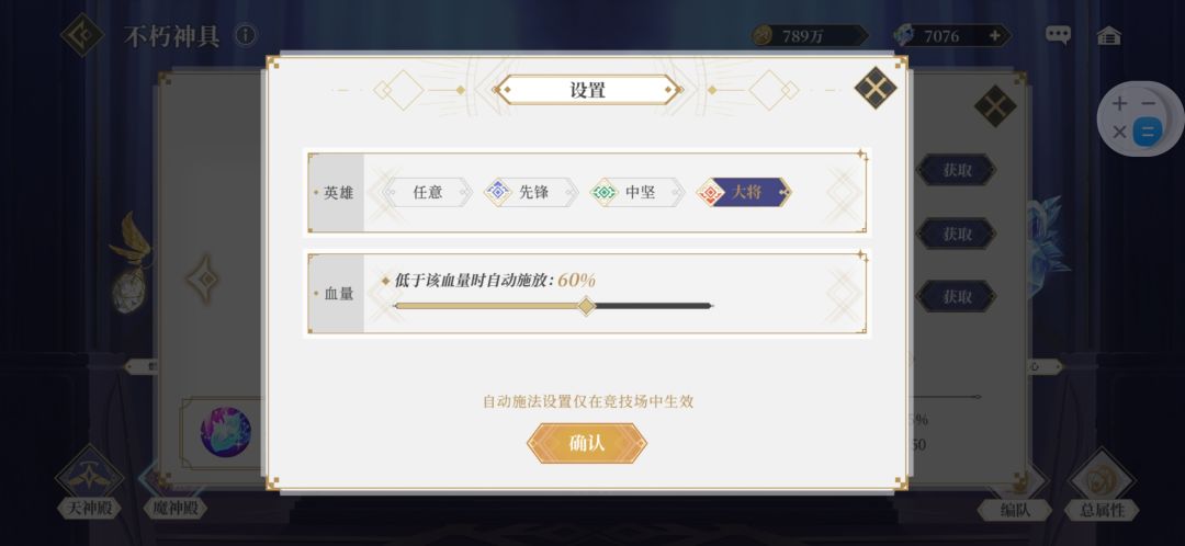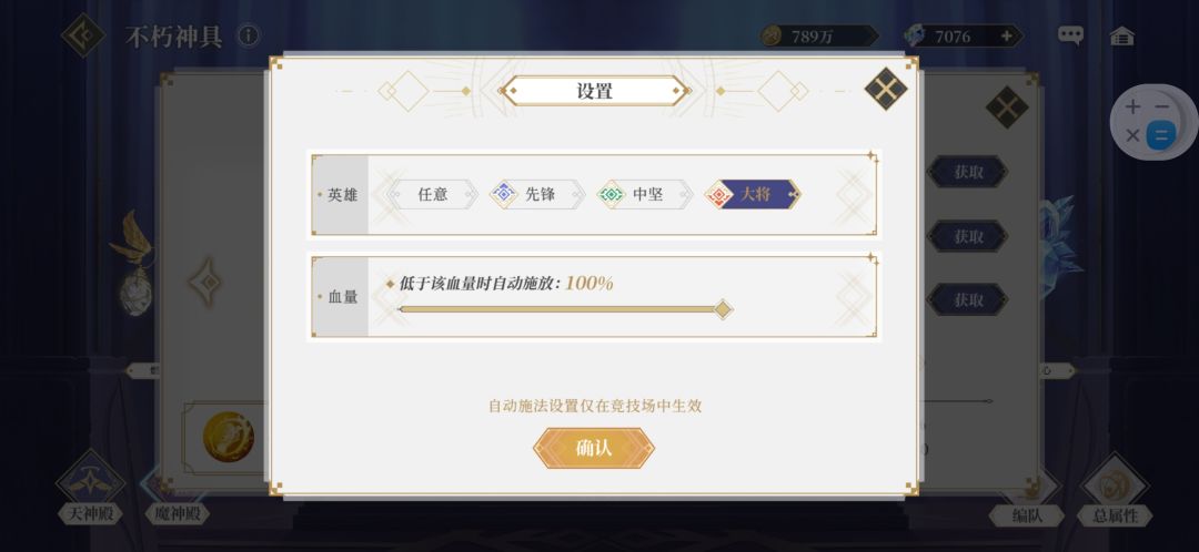 自动战斗需要提前设置好神具技能的释放条件,可以参考我的设置。