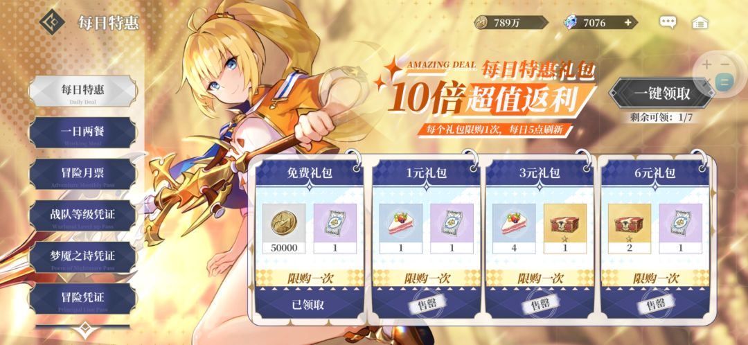 氪佬玩家建议购买终身礼包,除了那个时装卷没必要 其他的都是好东西,每日礼包巨氪可以拿满,一般的话就是12元再加一个30元,氪佬玩家推荐每日买满68羁绊卷,前期没开羁绊池也不怕,攒这就好,等到开启羁绊池就去抽,前期主要升级本命,氪佬推荐拿满每周的本命碎片礼包。