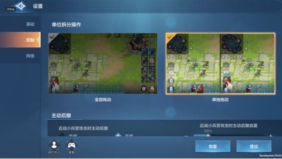 同时系统提供了残血小兵自动后退的机制,你可以自由选择小兵残血后退的血量,即时战略的经典操作实现了精简化!