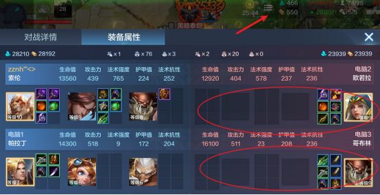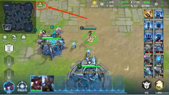 点击右上角资源图标左边的“菜单”按钮,可以先看到敌我英雄装备属性信息。注意其中地方信息会根据“敌方英雄最后一次出现在我方视野内”的情况进行显示。