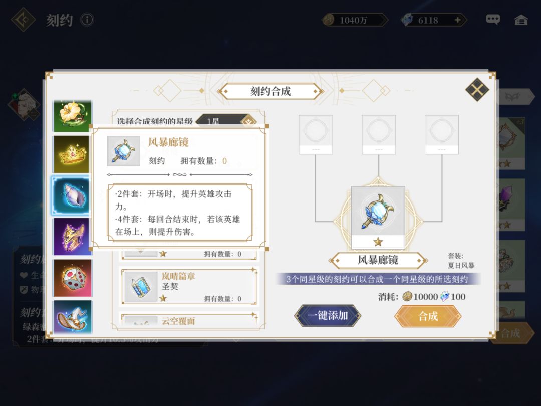 那么有钱的老铁可以直接购买礼包获得五星刻印,再合成你想要的套装。但这样成本过于巨大。不建议,巨佬随意。