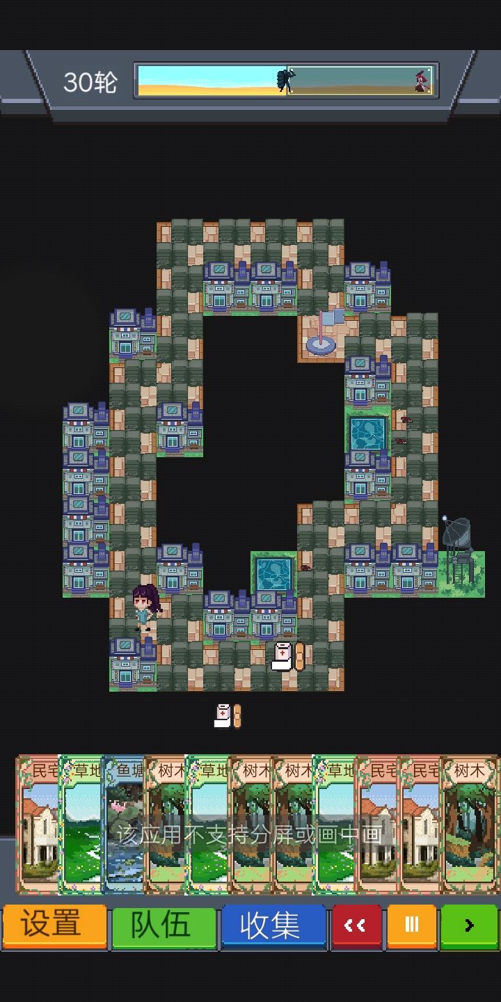 注意:①期间不要合成停车场(警局后面放花),停车场会自动灭怪,怪都被停车场灭了你就没有卡片了。②不要贪小便宜合成足球场(民房后面放花),放了花就会减少怪物和出卡片的概率(大概是这样)(我失败了很多次就是因为这个,这个是我自己发现的规律)
