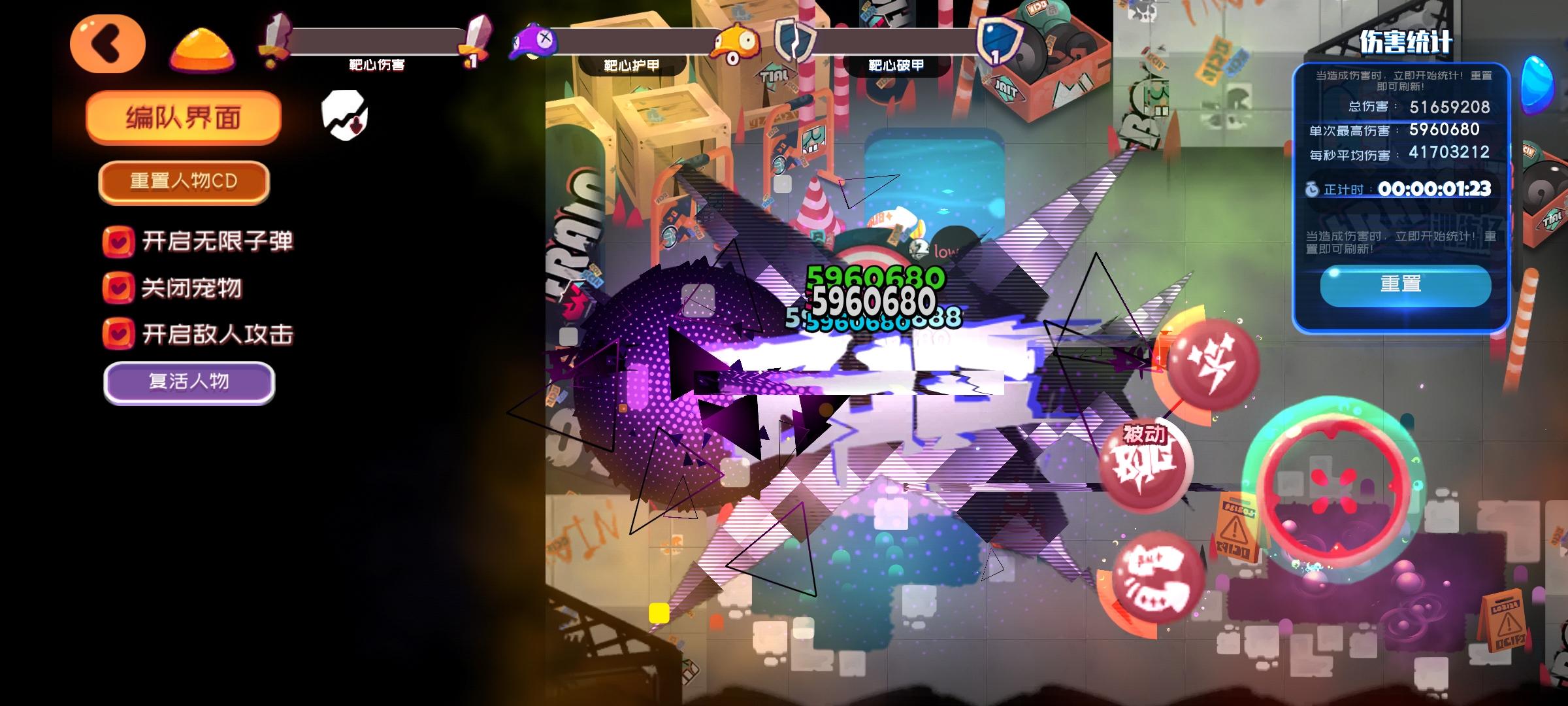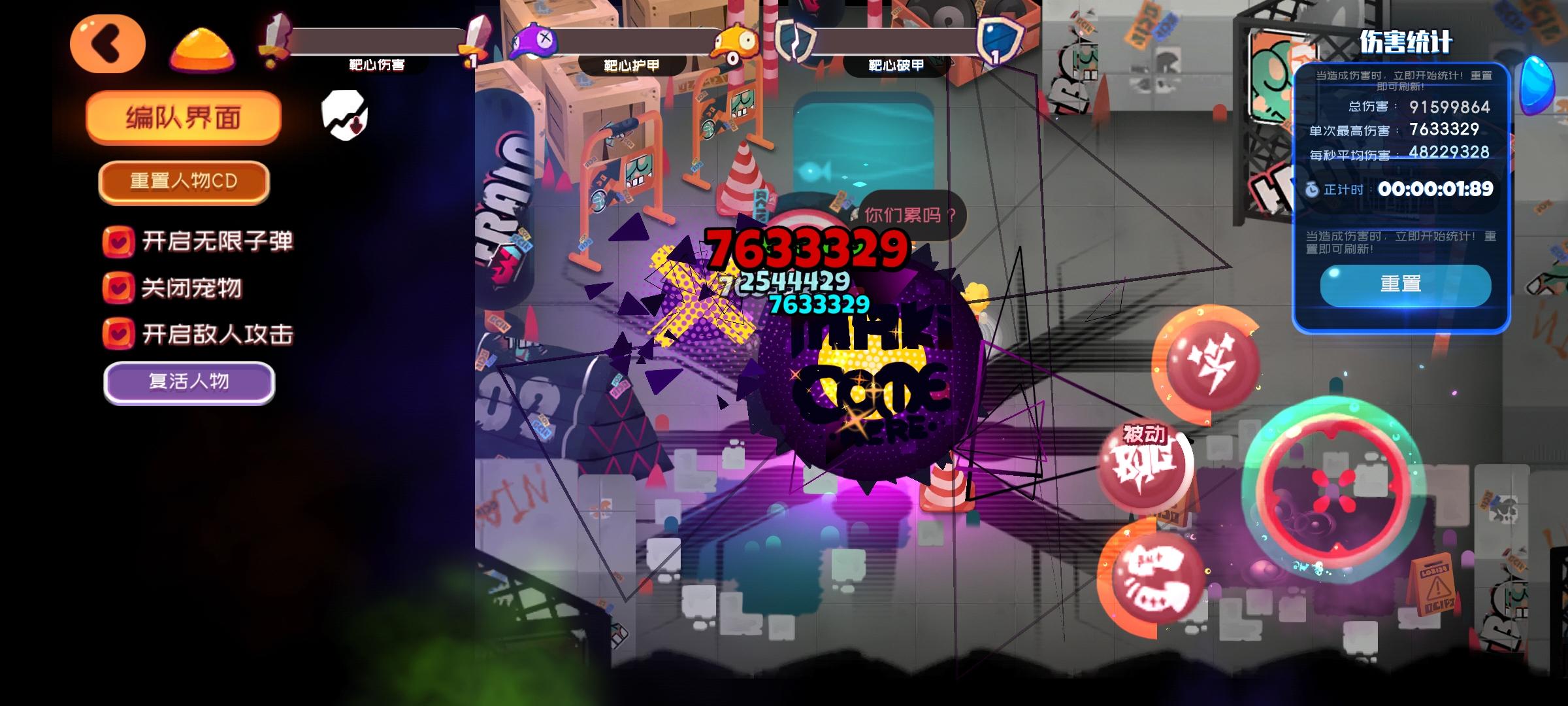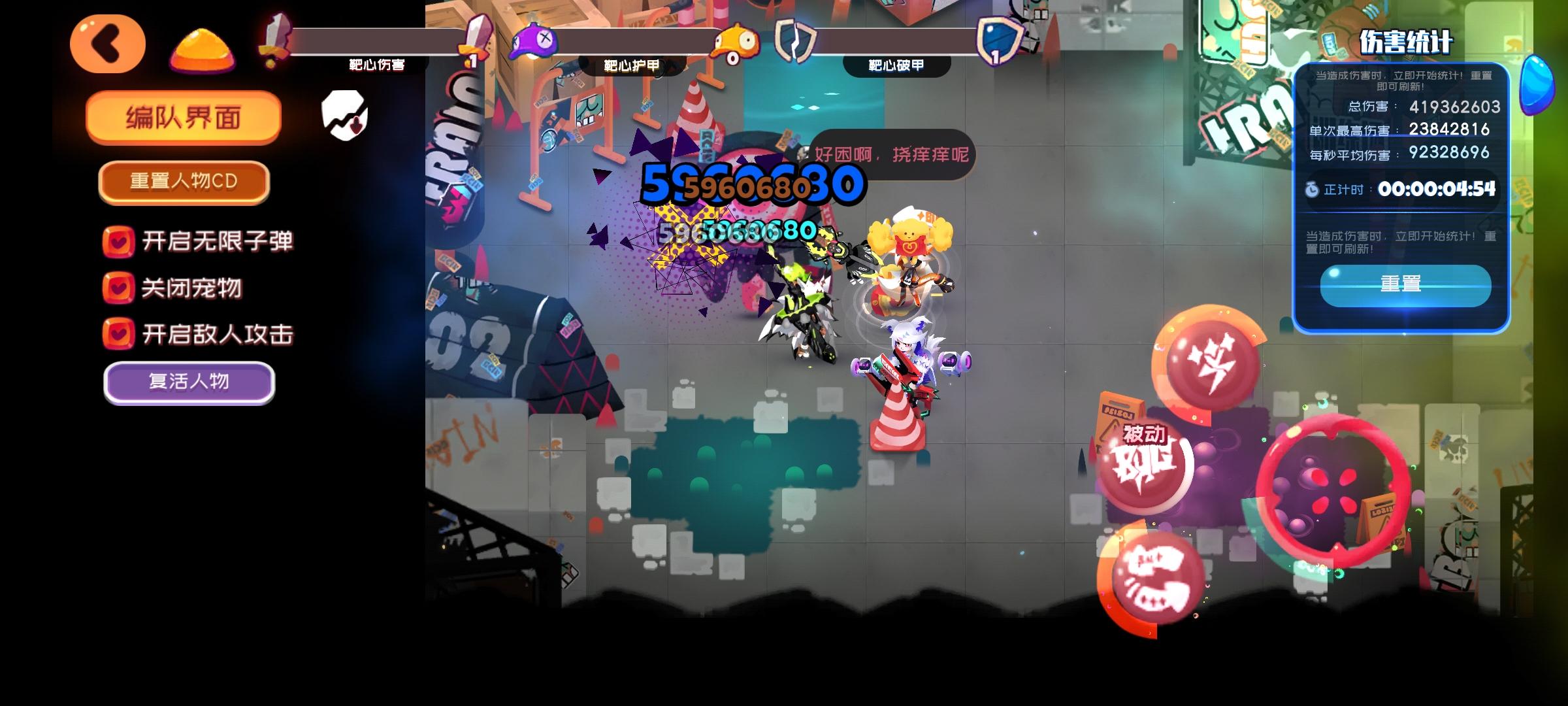图2,同图一装备,buff全开,0护甲,maki爆出bug被动,最高单次输出2000万,最高秒伤9000万