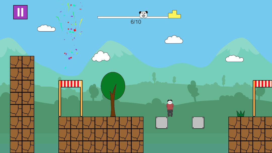 这是一个熊猫人,需要跨过很多栏杆去获得奖牌,不过要小心,每个栏杆前面都会有不同的套路等着你。