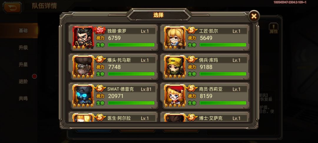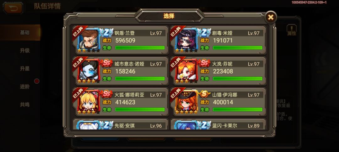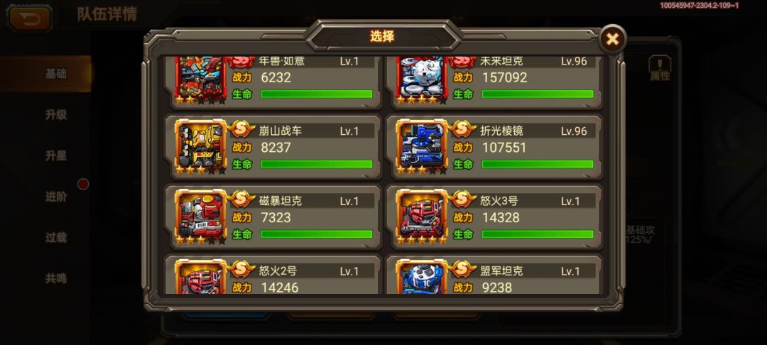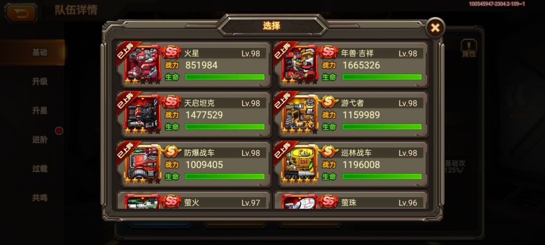 这是我现在的阵容和人物及车