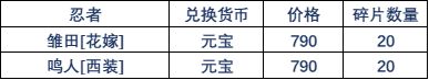 本次限时更新如下忍者: