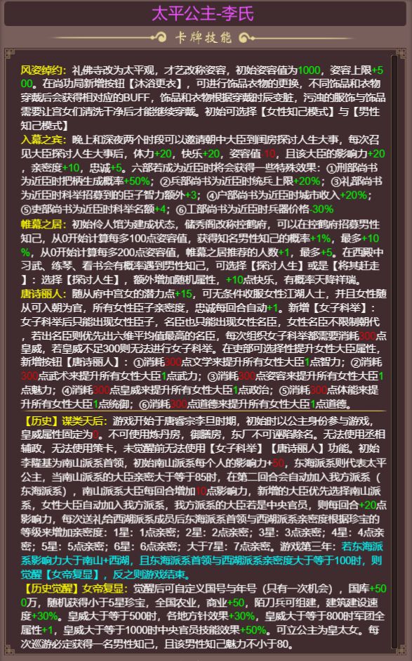 并且可以花费300点属性点来让全部女性大臣获得属性,不可谓不强!