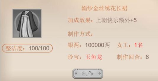 其次可以前往尚宫局更换衣服部件,会为人物各种各样的增益BUFF。