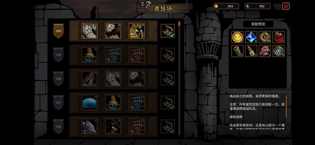 2,竞技场打到200层,BOSS真的是变态!运气不好刚上场牧师的遁还没开,一个大招你就全挂了!