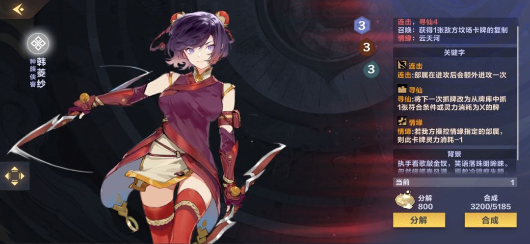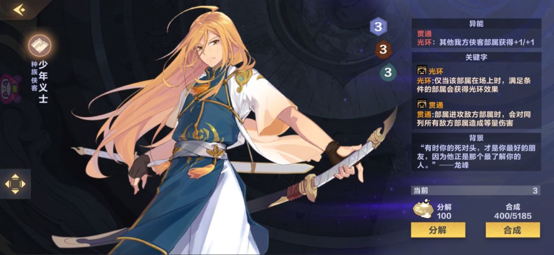 这套卡组的特点就是前期能铺场压制,后期能一波斩杀,配合土各个侠客间的羁绊产生高质量部署(注意:百里云不是侠客)