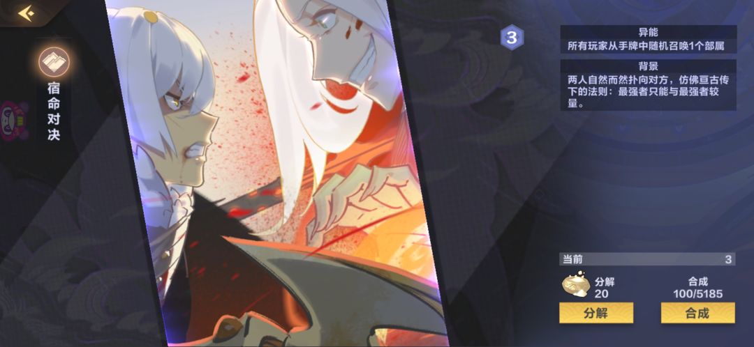 这套卡组的主要构筑思路是通过前期不断利用低费侠客进行铺场压制,也就是曾经常规的土的玩法,然后将手牌中低费部署打出后,用宿命对决稳定拉出手牌中的百里云,配合大招吹猪,可以瞬间偷掉24血